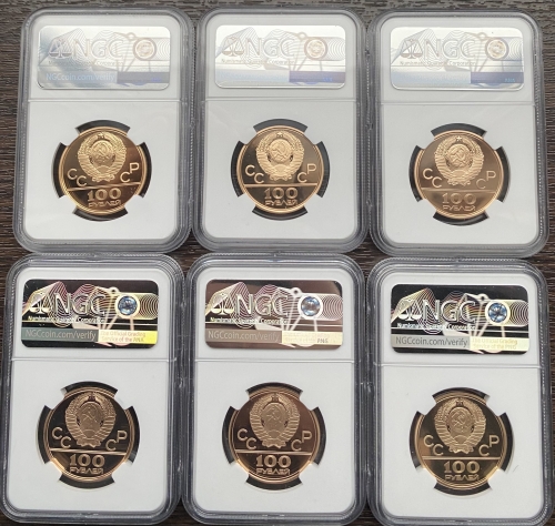 Великолепный коллекционный набор золотых монет Олимпиада 80 100 рублей в слабах NGC PROOF 69 Ultra Cameo.Станет украшением Вашей коллекции и прекрасной инвестицией.