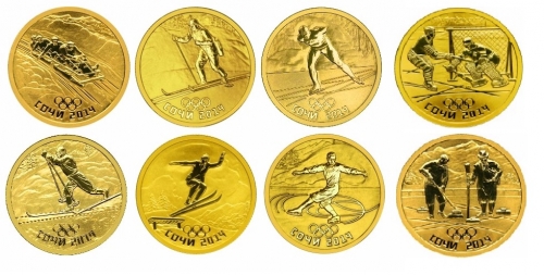 Набор золотых монет "Сочи спорт" олимпиада 2014г. , 50 рублей, 2014 год, 7,78г