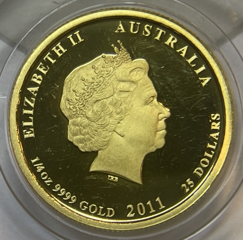 Золотая монета 25 долларов "Год Кролика" Лунный календарь, 2011 г., Австралия, Au 9999, 7,78 г.