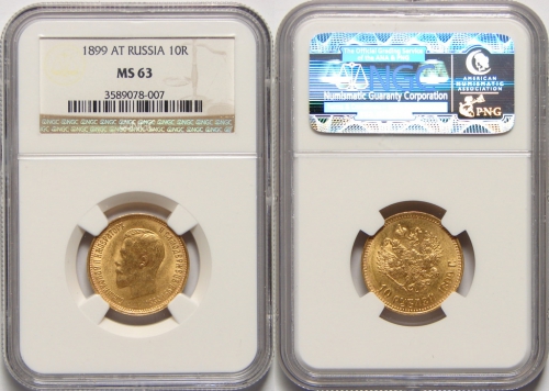 Золотая монета Николая II 10 рублей 1899 год состояние MS 63
